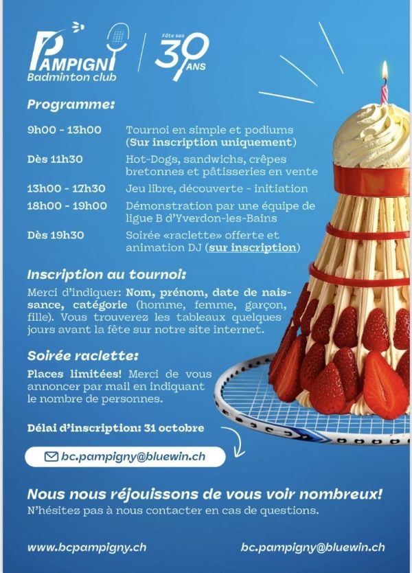 Pour la première fois, le club a loué la salle à une entreprise. En effet, les employés de l’entreprise Rime SA ont eu le droit à une petite initiation au badminton le 29 novembre 2024. Après un rapide briefing sur les règles du jeu, les employés ont pu s’amuser en disputant quelques matchs, puis en partageant un petit apéro. Vu le succès de cet événement, le club est prêt à renouveler l'expérience dans le futur.